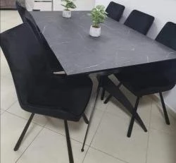 שולחן אוכל שנפתח עד 4.80 מטר עם פלטה דמוי שיש/פורמייקה